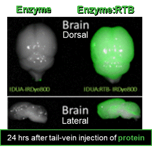 Our lectin delivery platform is able to deliver corrective doses of enzyme to the brain, heart, kidney, bone and muscle even in the presence of blocking antibodies in animal models.